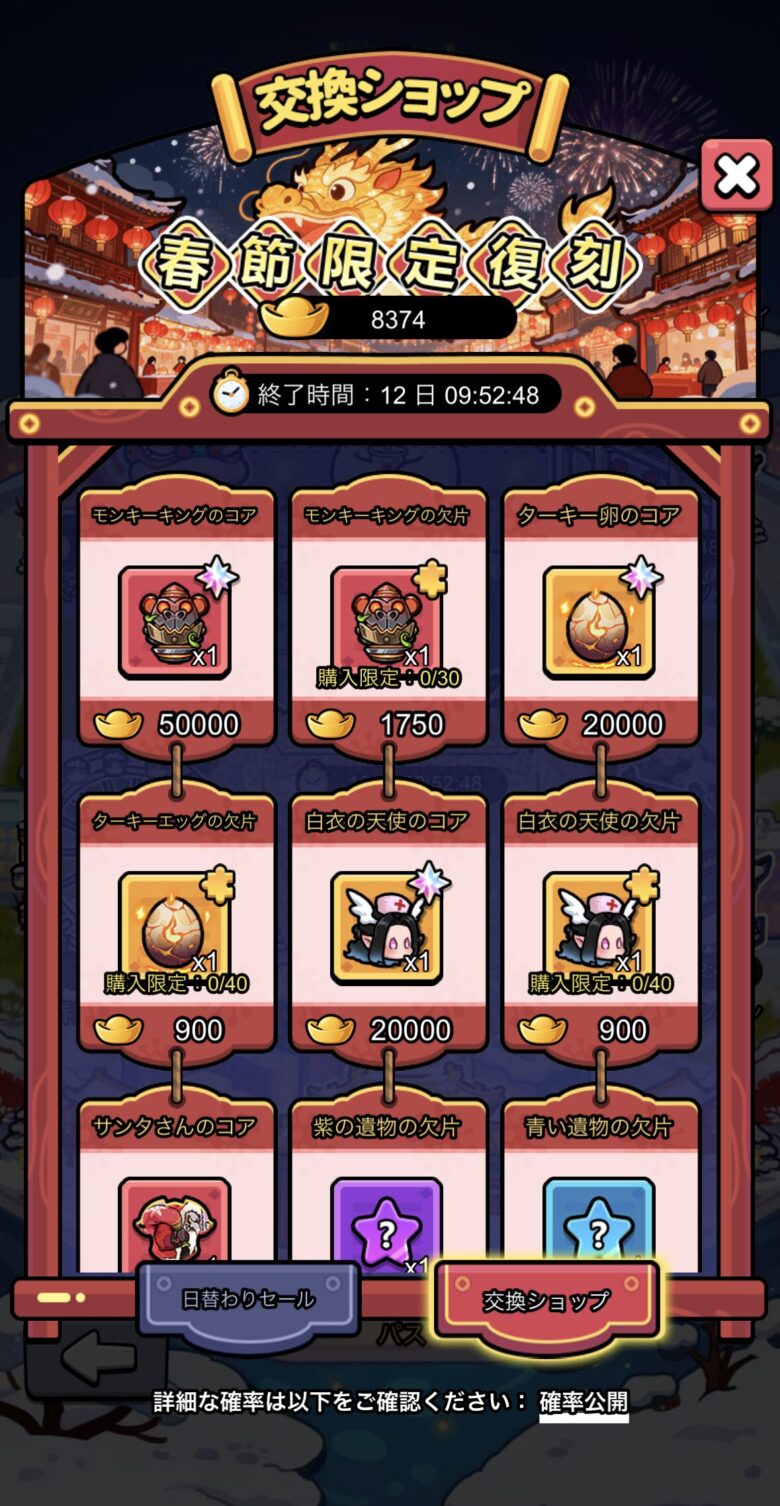 - 「春節快楽」の交換ショップで春節開運金貨×50,000個で交換
