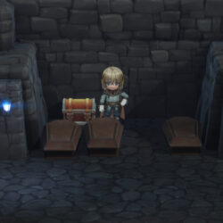2つ目の宝箱は修道院最奥の修道院女が2人並んでいる奥の窪みから隠し通路へ移動し、下まで進むと檻の前にある宝箱ゲットです。