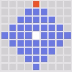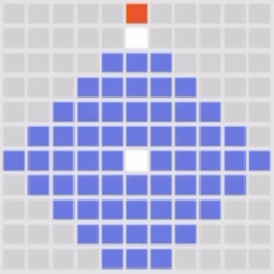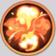 自身から5マス以内のマスを1個選択し、目標の1マス四角範囲内の敵全員に火属性ダメージを1回与える。